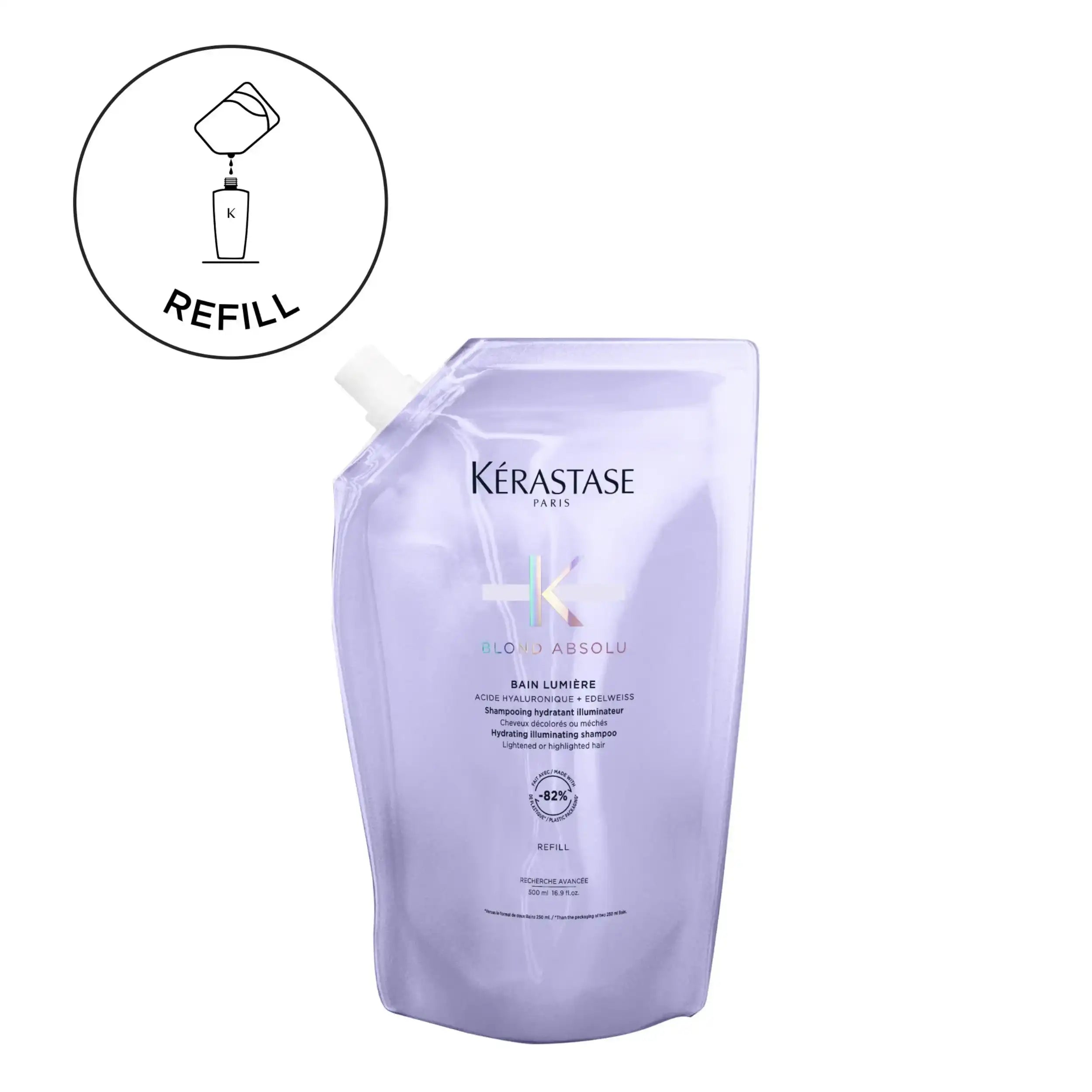 Kérastase Blond Absolu Bain Lumière Ricarica 500 ml è la soluzione refill pensata per riempire il flacone ricaricabile da 500 ml, riducendo l’impatto ambientale senza rinunciare alla qualità professionale.