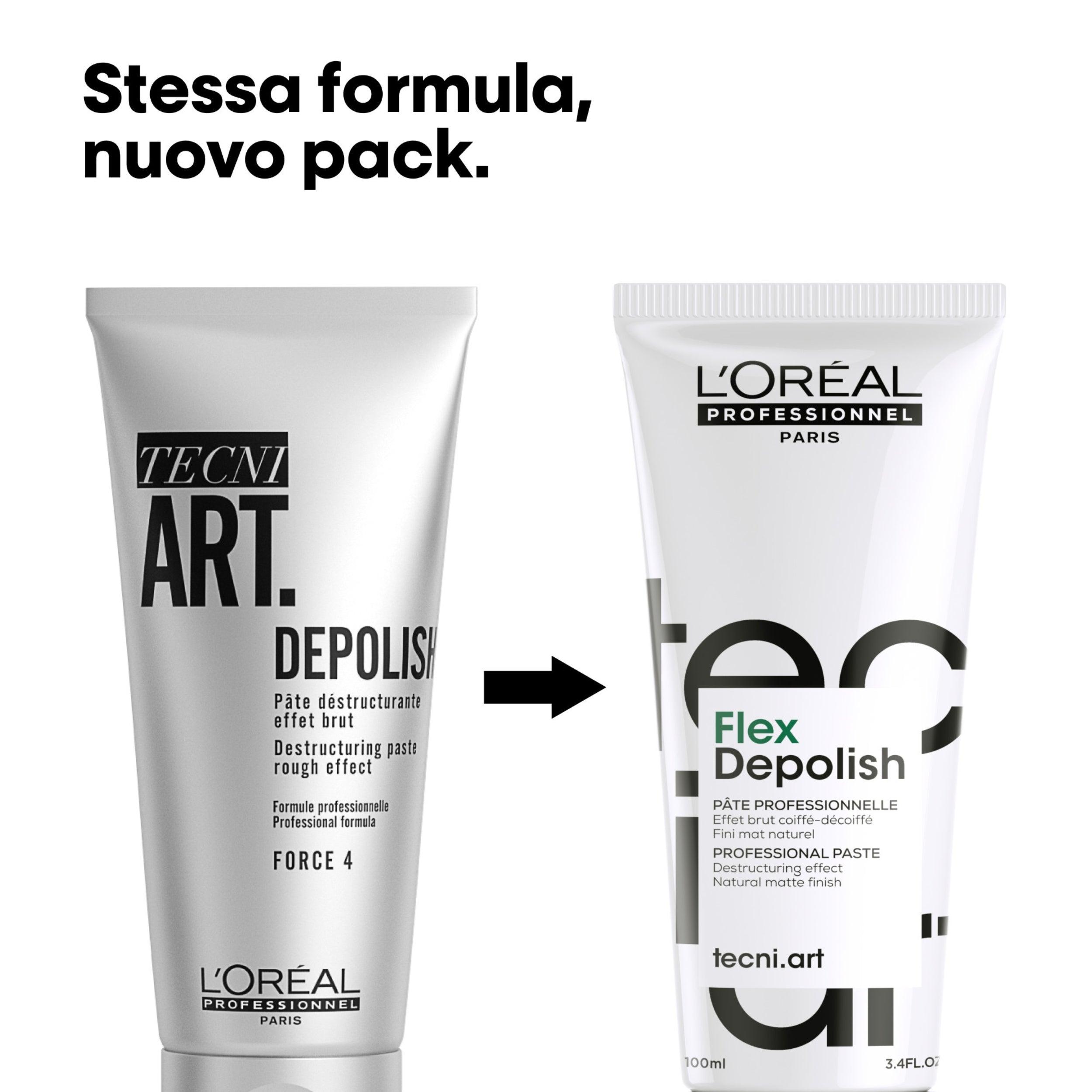 Ideale per capelli di tutti i tipi, il TecniART Flex Depolish è l'alleato perfetto per definire il look senza appesantire, creando volume e separazione per un effetto spettinato ma controllato.